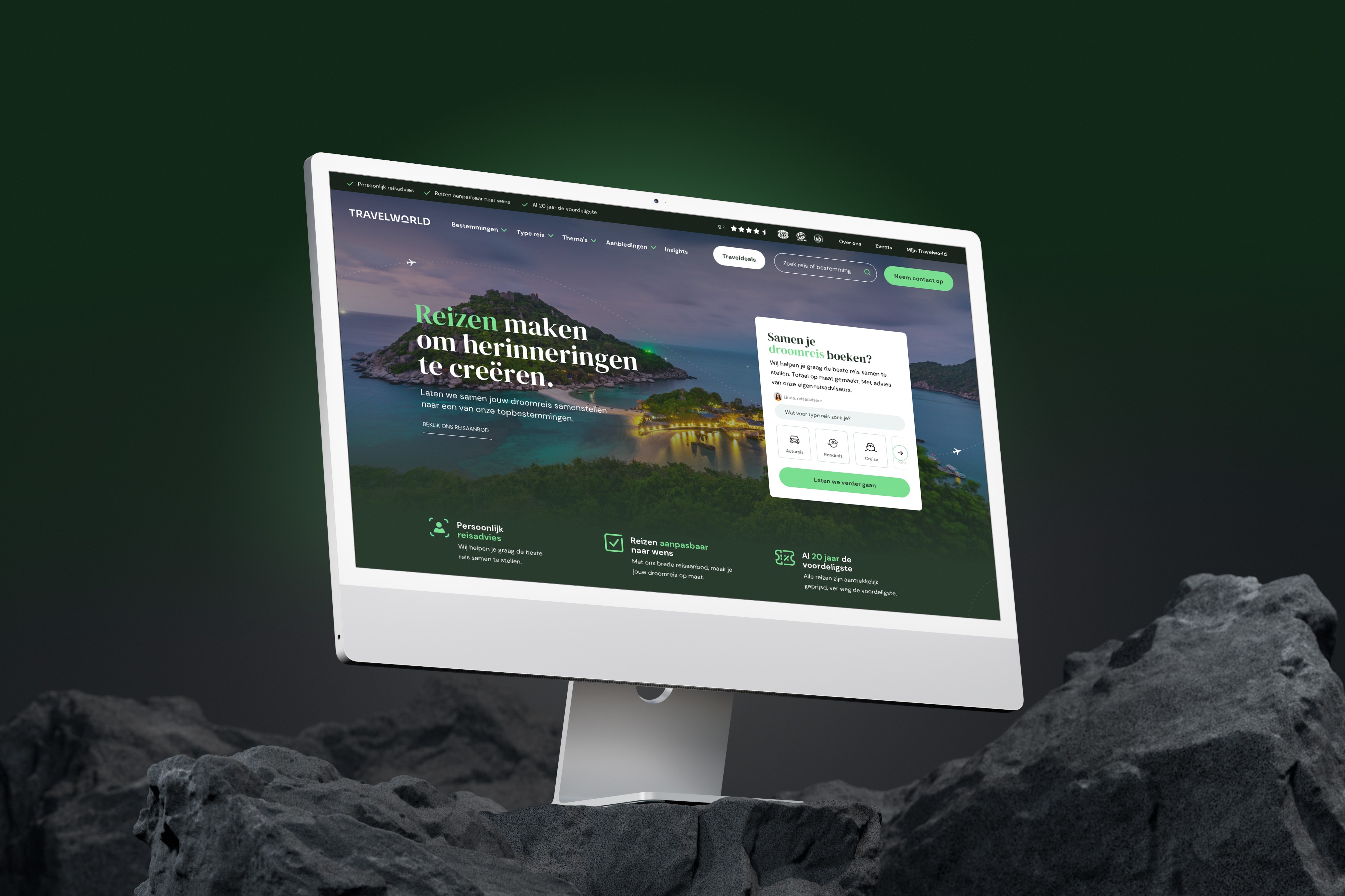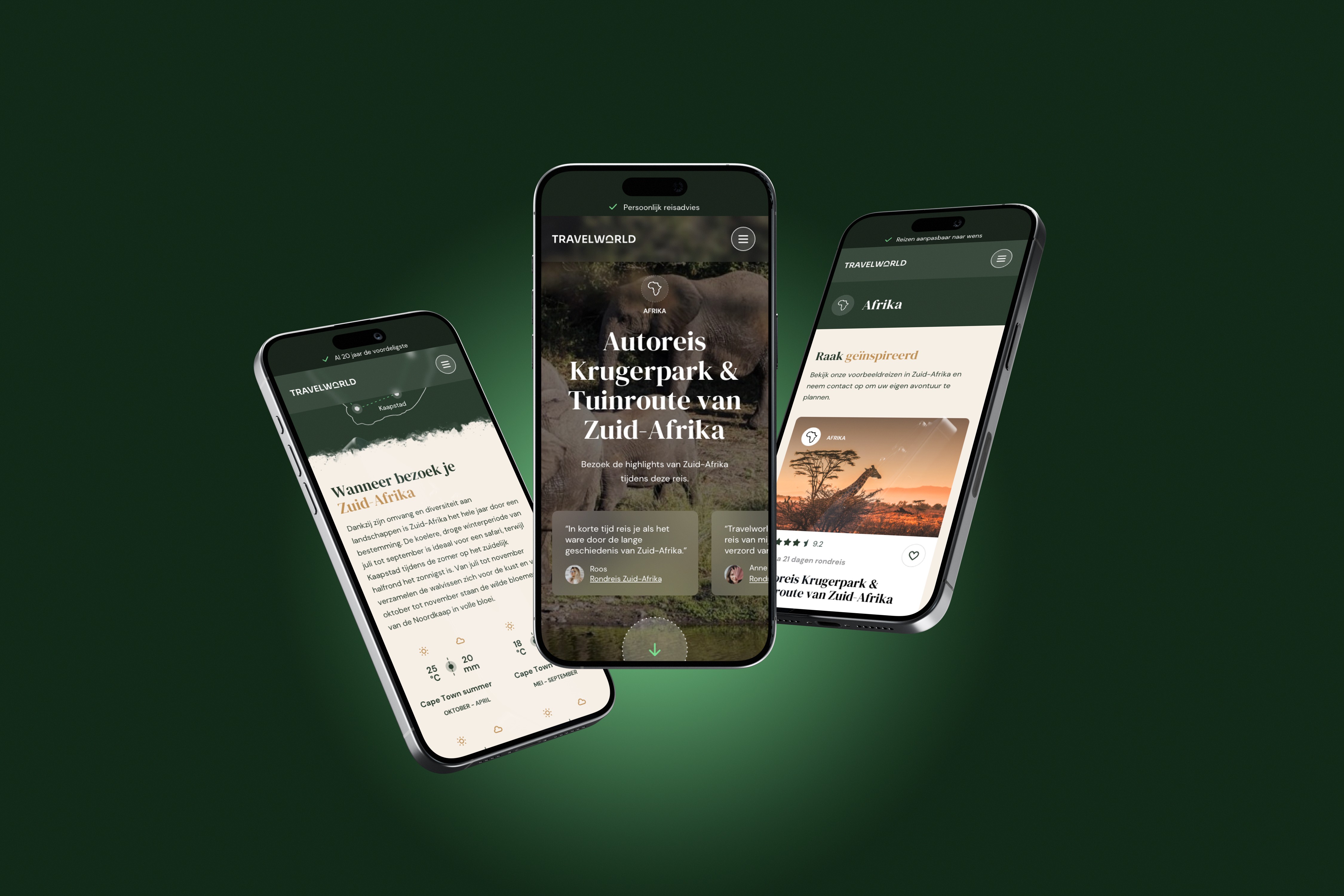 Voor het redesign van Travelworld.nl heb ik me gericht op het creëren van een moderne, intuïtieve en visueel aantrekkelijke gebruikerservaring die vertrouwen wekt en conversie stimuleert. Het proces begon met een analyse van de bestaande website en gebruikersgedrag. Hieruit bleek dat de navigatie onduidelijk was en dat belangrijke informatie moeilijk vindbaar was. Op basis van deze inzichten heb ik wireframes en user flows ontwikkeld om de structuur te vereenvoudigen en de belangrijkste acties zoals het zoeken en boeken van reizen centraler te stellen.